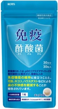 【機能性表示】 本品には酢酸菌GK-1(G.hansenii GK-1)が含まれます。酢酸菌GK-1は、pDC(プラズマサイトイド樹状細胞)に働きかけ、健康な人の免疫機能の維持に役立つことと、花粉、ホコリ、ハウスダストなどによる鼻の不快感を軽減することが報告されています。 【機能性関与成分】 酢酸菌GK-1(G.hansenii GK-1) 400億個 【届出番号】 K372 【原材料名】 エリスリトール(国内製造)、コーンスターチ、酢酸菌加工品(マルチトール、酢酸菌加工品)、麦芽糖/結晶セルロース、クエン酸、香料、二酸化ケイ素、ステアリン酸カルシウム、ヒドロキシプロピルセルロース、タンニン酸、甘味料(アスパルテーム、L-フェニルアラニン化合物) 【内容量】 30g(1,000mg×30粒) 【原産国】 日本 【発売元】 ロッツ株式会社
